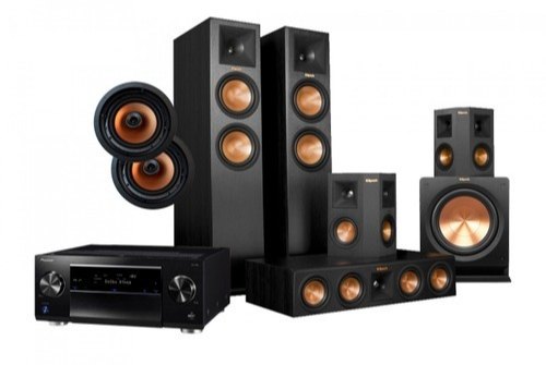 A 5.1 home theatre system with 5 or more speakers, including a centre speaker, left and right speakers, rear left and right speakers, and, a subwoofer, is the most basic, typical home theatre setup.